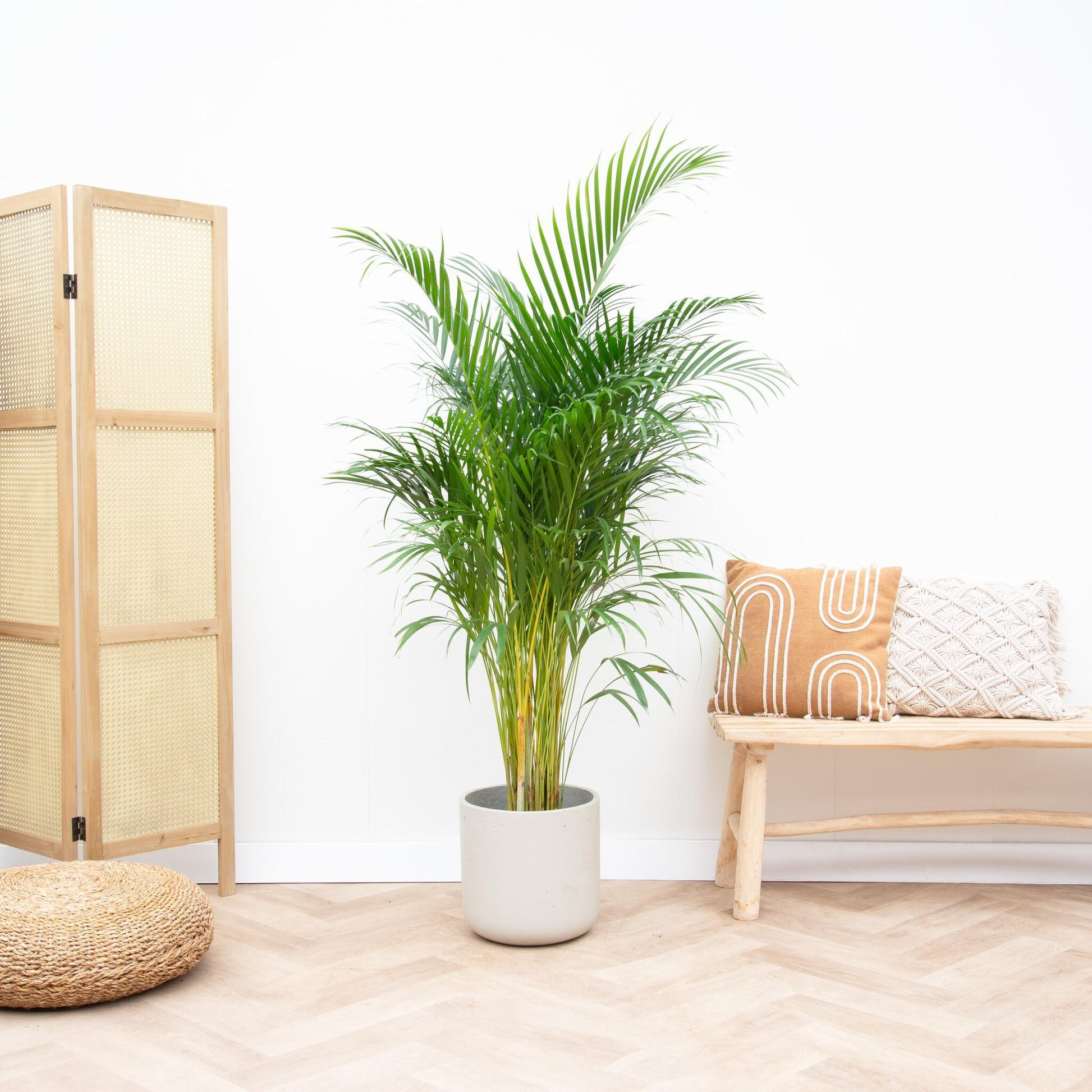 De Areca Palm is uiterst veelzijdig, perfect gedijend in helder, indirect licht, maar ook tolerant voor lichte schaduw, waardoor hij een ideale keuze is voor diverse binnenomgevingen. Naast zijn visuele aantrekkelijkheid staat deze palm bekend om zijn luchtzuiverende kwaliteiten, waardoor hij bijdraagt aan een gezonder binnenklimaat.